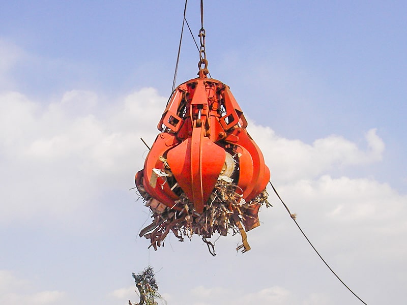 主要用于抓取廢鋼、垃圾、塊礦(石)等不規(guī)則大粒度散貨物料的裝卸,適用于集裝箱岸橋、單索格林吊機及其它各型起重機,可大大提高起重機的綜合工作效率。