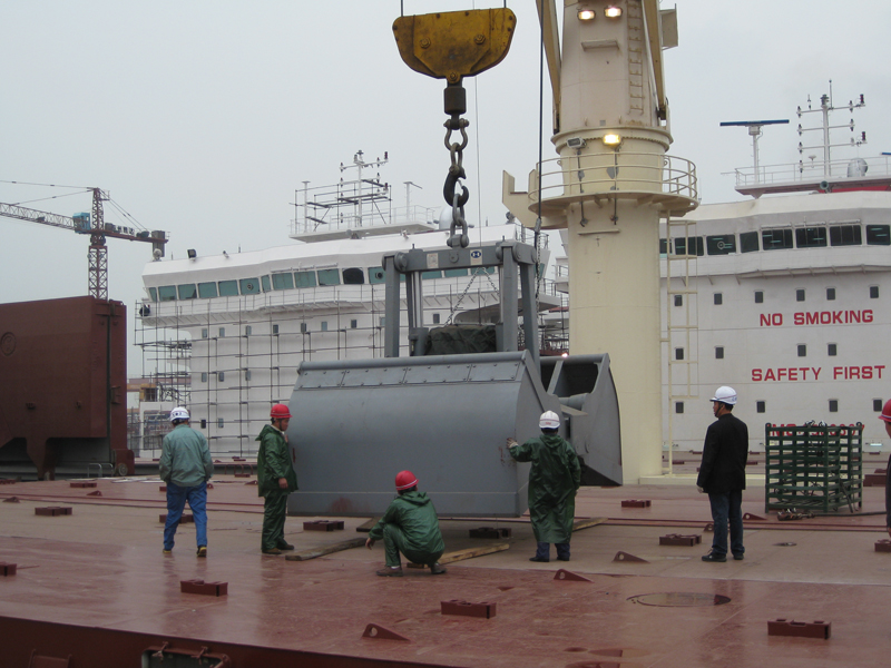 用于抓取煤炭、礦粉等最大粒度不超過100mm的細粉狀散貨物料的裝卸。適應(yīng)各種型式的起重機,尤其是集裝箱岸橋、船用格林吊機等。